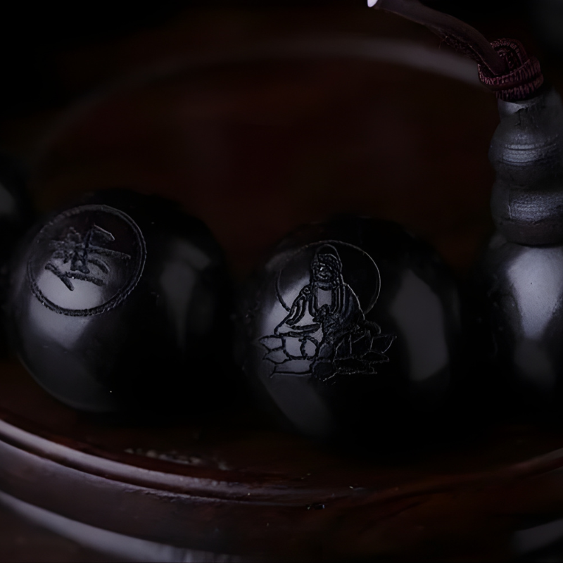 This ebony wood prayer bead bracelet supports focused meditation and stress relief with its smooth, rounded beads and adjustable cord. Carved script on select beads adds subtle spiritual detail for mindful use. The dense black wood provides natural protection and grounding, while its lightweight structure allows comfortable all-day wear.
